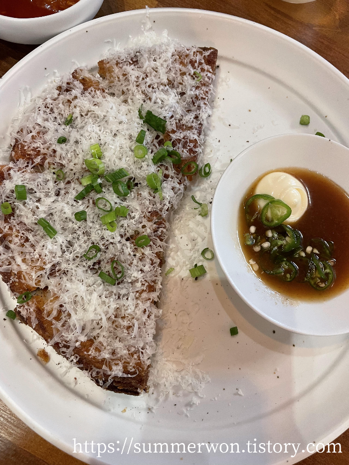 트러플 감자채전은 정말 꿀맛... 너무 맛있었고, 찍어먹는 소스도 맛있었고 모든 게 완벽했다.