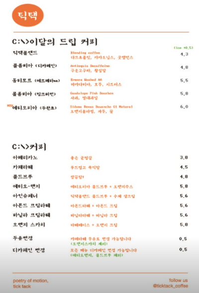 처음에 이름이 너무 어색해서 와닿지가 않았는데, 매장에 가보니 아주 힙한 카페였다. 인테리어가 개성만점이었다. 사장님이 보드를 타신다고 했나? 보드가 취미시라고 했던 것 같다... 매장 소개글에, 틱택의 뜻이 스케이트 보드 기술이라고 한다.