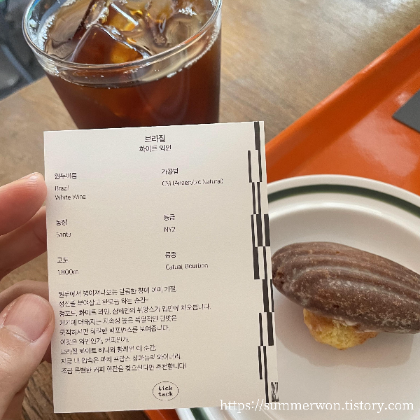 커피는 추천받은데로 상큼하고 밝고, 과일맛이 나는 원두였다... 아이스로 먹으니 너무 맛있었다.