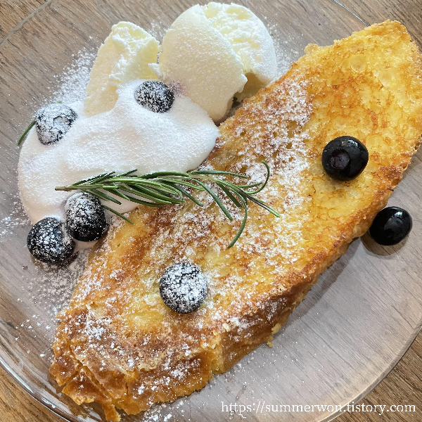 하여 지인의 추천으로 디저트도 꼭 먹어봐야 한다며 마들렌이랑, 프렌치토스트 주문했었는데, 너무 맛있었다.