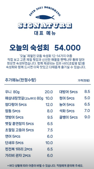 | 회가 신선 하다 | 웨이팅 필수라는점 (인내심 필요) |