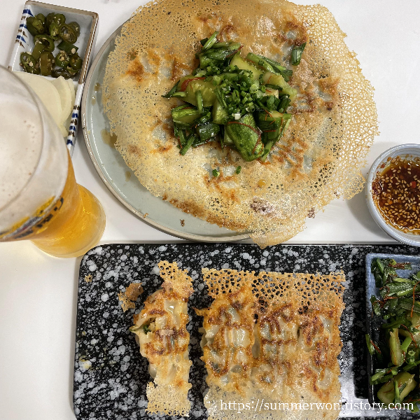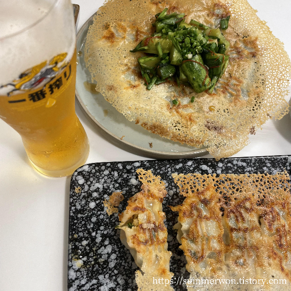 사실 일본가서 제대로 된 교자를 먹어본 기억이 없어서 같이 나온 오이무침이 엄청 어색했는데, 엄청 잘 어울렸다.