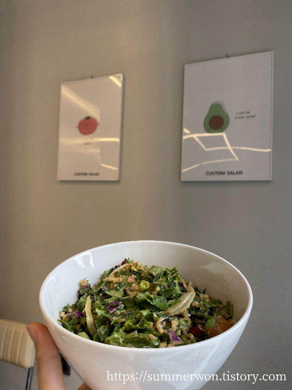 처음에는 아니 식사로 돈 주고 샐러드 사 먹는 게 너무 아깝고.. 배도 안 찰 것 같았지만, 운동을 시작하면서 건강에 대해서 관심이 생겼고 그리고 음식이 정말 중요하다는 걸 느끼고 나선, 가끔씩 사 먹는데 이런 샐러드나 다이어트식은 왜 그런지 모르겠지만, 확실히 집에서 해 먹는 것보다 밖에서 사 먹는 게 맛있다.