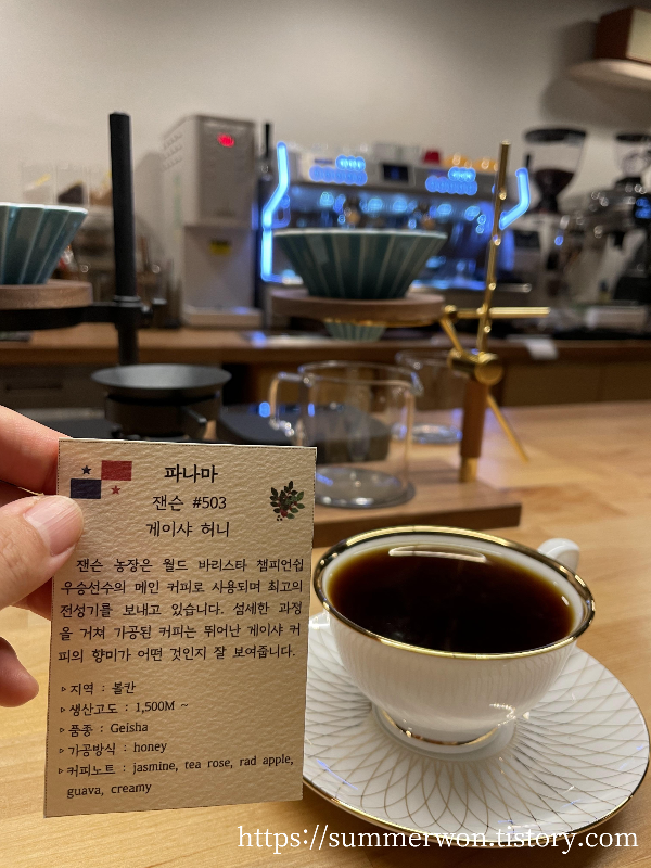 커피맛은 여기가 더 좋을 듯 ㅎㅎ 너무 잘 방문했다 싶었다. 바리스타님께 먹고 싶은 원두를 설명드렸는데, 추천해 주셔서 게이샤로 먹었다.