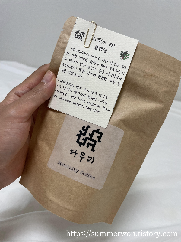 입속을 정말 딱 깔끔하게 정화시켜 주는 느낌이었다. 향은 진짜 너무 좋고.. 뭐랄까 차 와 커피의 중간 같은 맛이었다. 아이스커피 아니어도 충분히 원두의 맛이 느껴졌다. 커피 한잔의 행복 크 결국 원두 구매하고 왔다 ㅎㅎ 블랜딩 원두로 구매했는데, 집에서 먹어보니 베리류 맛과 향이 많이 나는 편이었고 좀 진했고 그리고 산미는 심하지는 않았다 ( 내 입맛 기준). 하지만 매우 신선... 어떻게 내리는 지도 기준을 잡아주셨다. 마지막 손님이라 쿠키도 챙겨주시고 다음 단양 여행에 꼭 카페다우리를 방문하러 가야겠다