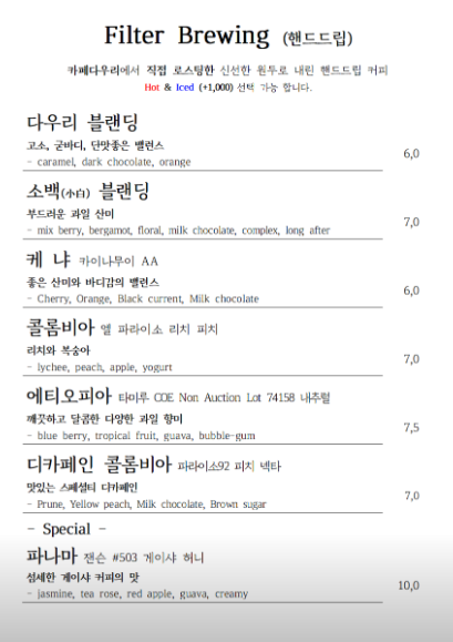 알고 보니, 내가 가보고 싶었던 다우리커피의 분점이라고 했다. 다우리커피도 가고 싶었는데.. (후기가 좋았고 경치가 좋아 보임)